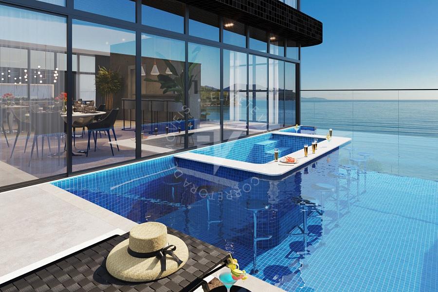 Apartamento pronto para morar com uma vista maravilhosa do mar, Localizado na quadra do mar em Perequê, Porto Belo - SC. O imóvel contém 4 suítes, 3 vagas de garagem e 197m² de área privativa.