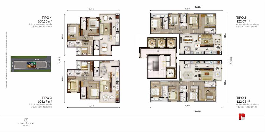 • Tipo II: 122,07m²