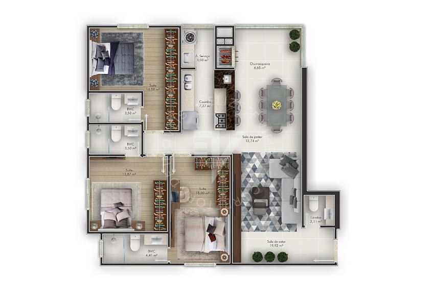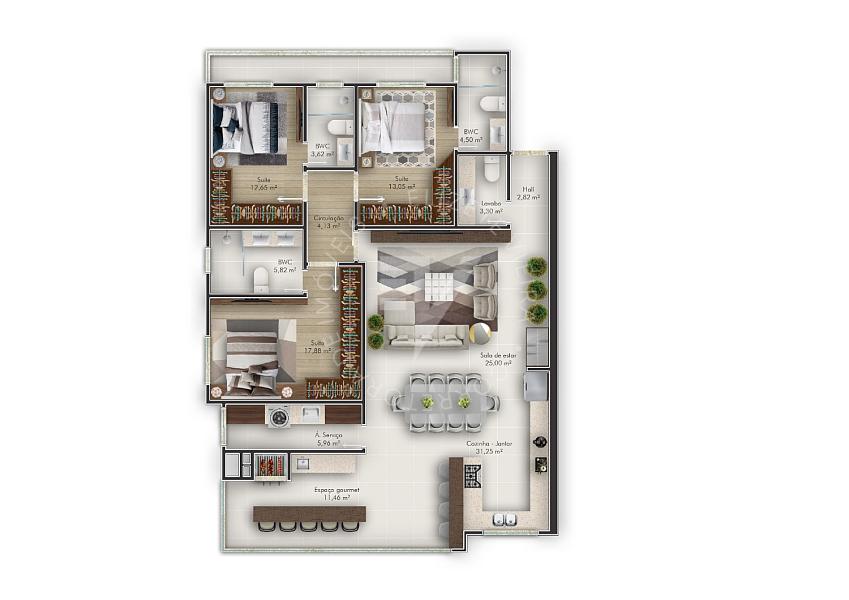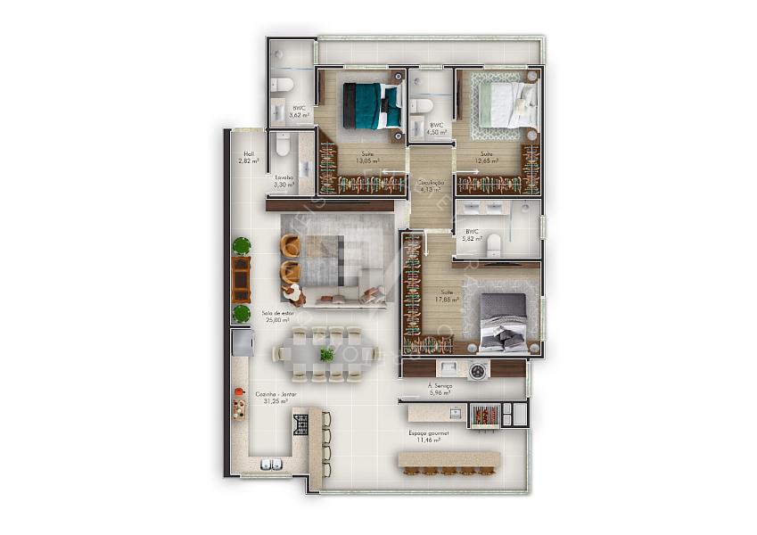 3 dormitórios (3 suítes)