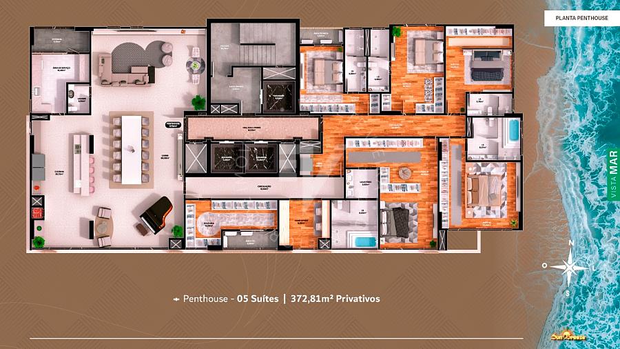 2 apartamentos p/ andar. Tipo 02: 3 suítes.